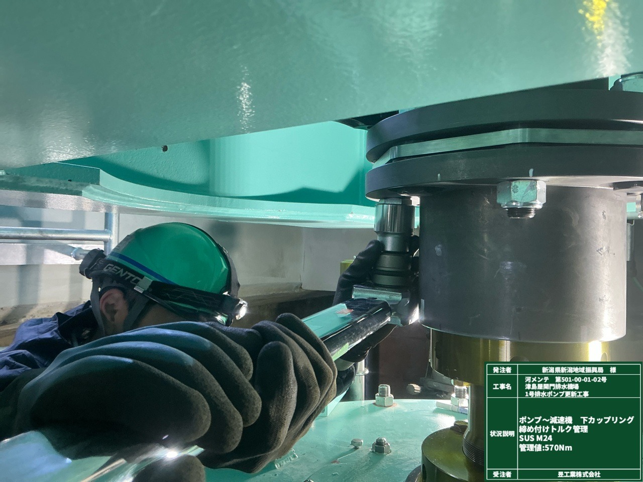 ポンプ~減速機 下カップリング締め付けトルク管理