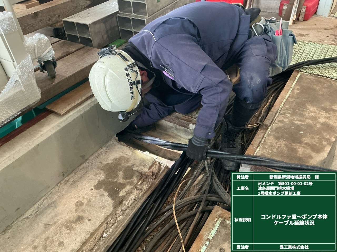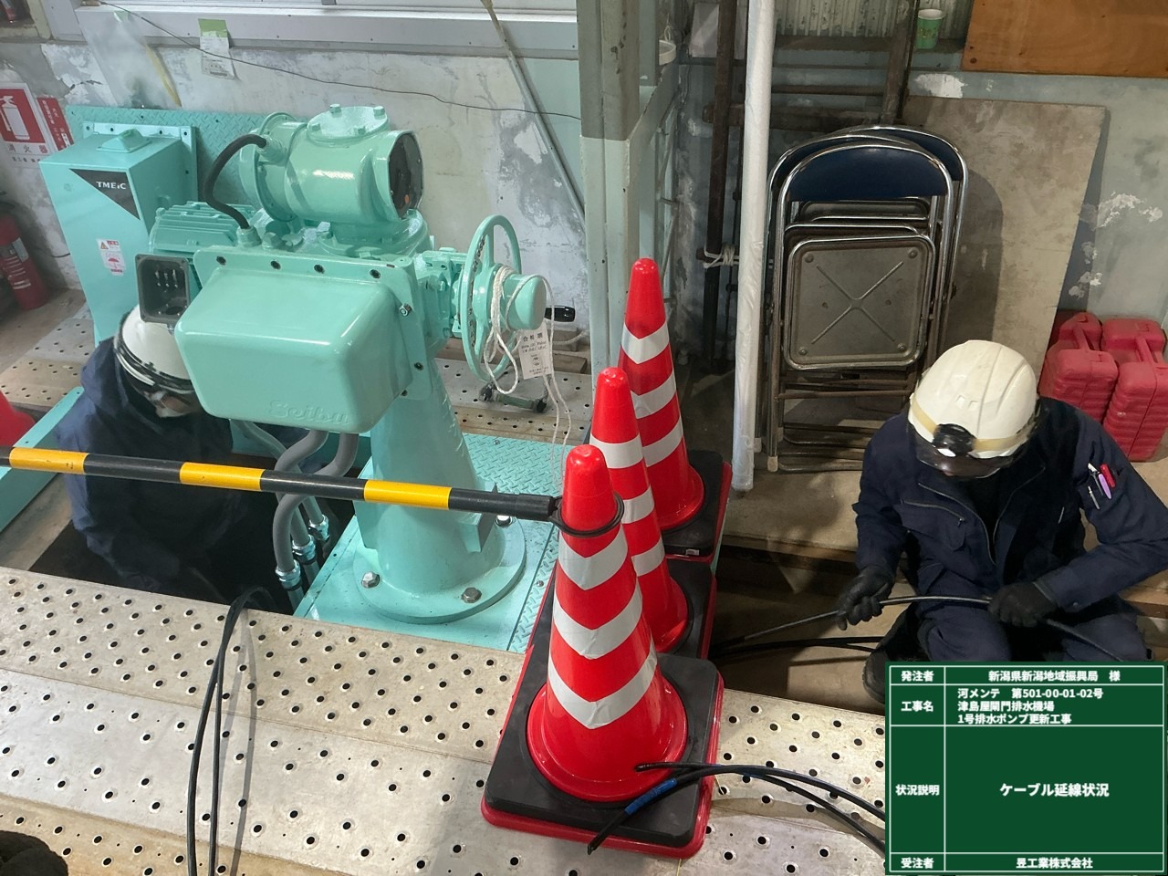 コンドルファ盤~ポンプ本体 ケーブル延線状況